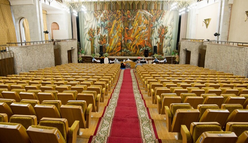 Киноконцертный зал на 400 мест расположен на 2-ом этаже корпуса Б.